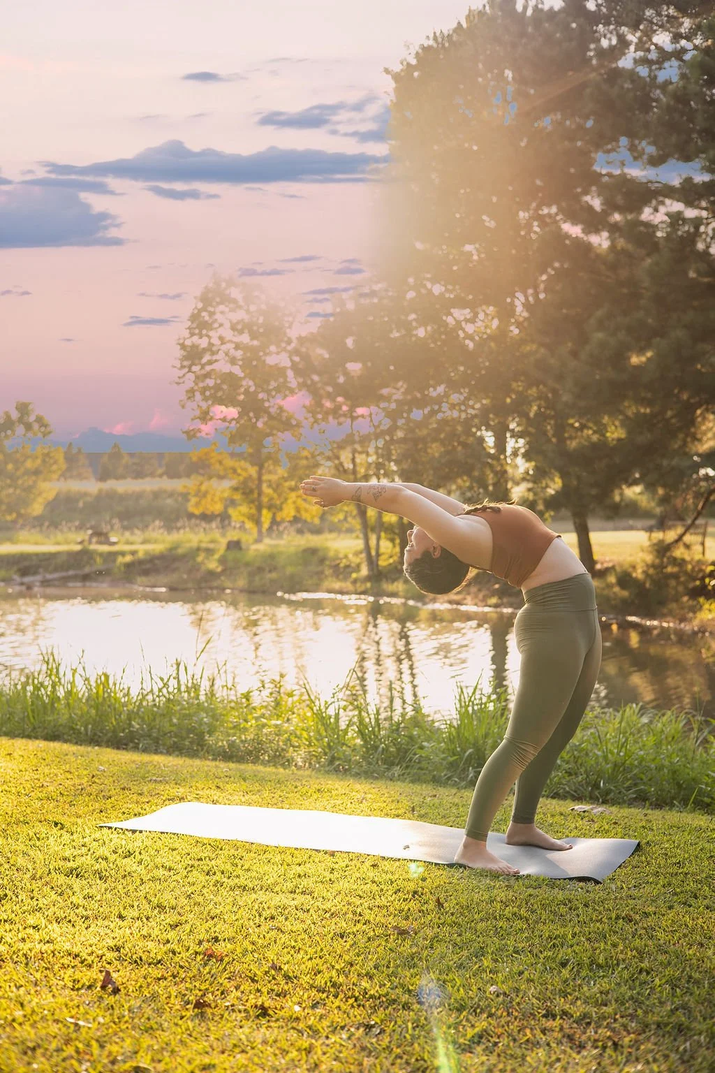 Her journey to yoga began in an unexpected way. A lifelong athlete, she missed the sense of community she once found in sports and, as she entered adulthood, struggled with anxiety and depression. After years of talk therapy, her therapist encouraged her to explore a somatic way to release the weight she carried. Hesitant at first, she started with YouTube videos before her mother gifted her a yoga retreat on Tybee Island. There, she discovered the deep connection, sisterhood, and community she’d been craving.